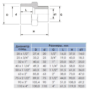 Муфта переходная ПВХ с нар. резьбой 25x3/4"