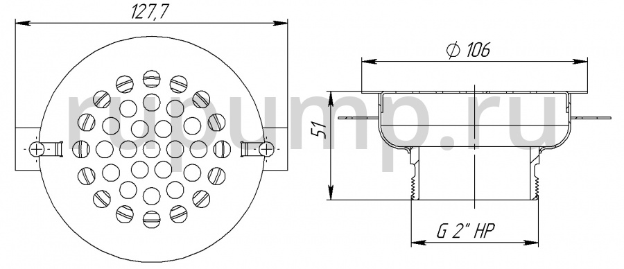Выпуск из переливного лотка Аквасектор, из нерж. стали, под плитку НР 2"
